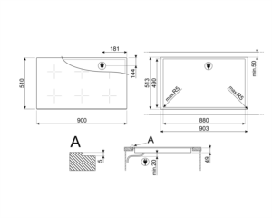 כיריים אפורות ברוחב 90 ס”מ, 3 מוקדי חימום MULTI ZONE