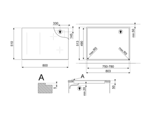 כיריים אינדוקציה אפורות ברוחב 80 ס”מ, בקרת טמפרטורה, תאורת LED.
