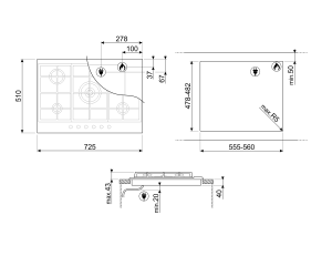 כיריים גז, נירוסטה, 70 ס”מ