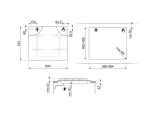 פרופיל התקנה נמוך במיוחד, גימור זכוכית, 4 מבערי אלומיניום