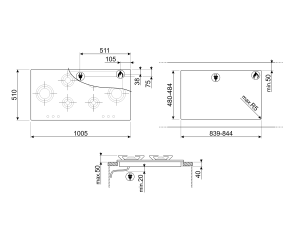 כיריים גז  6 מבערים, רוחב 100 ס”מ, נירוסטה