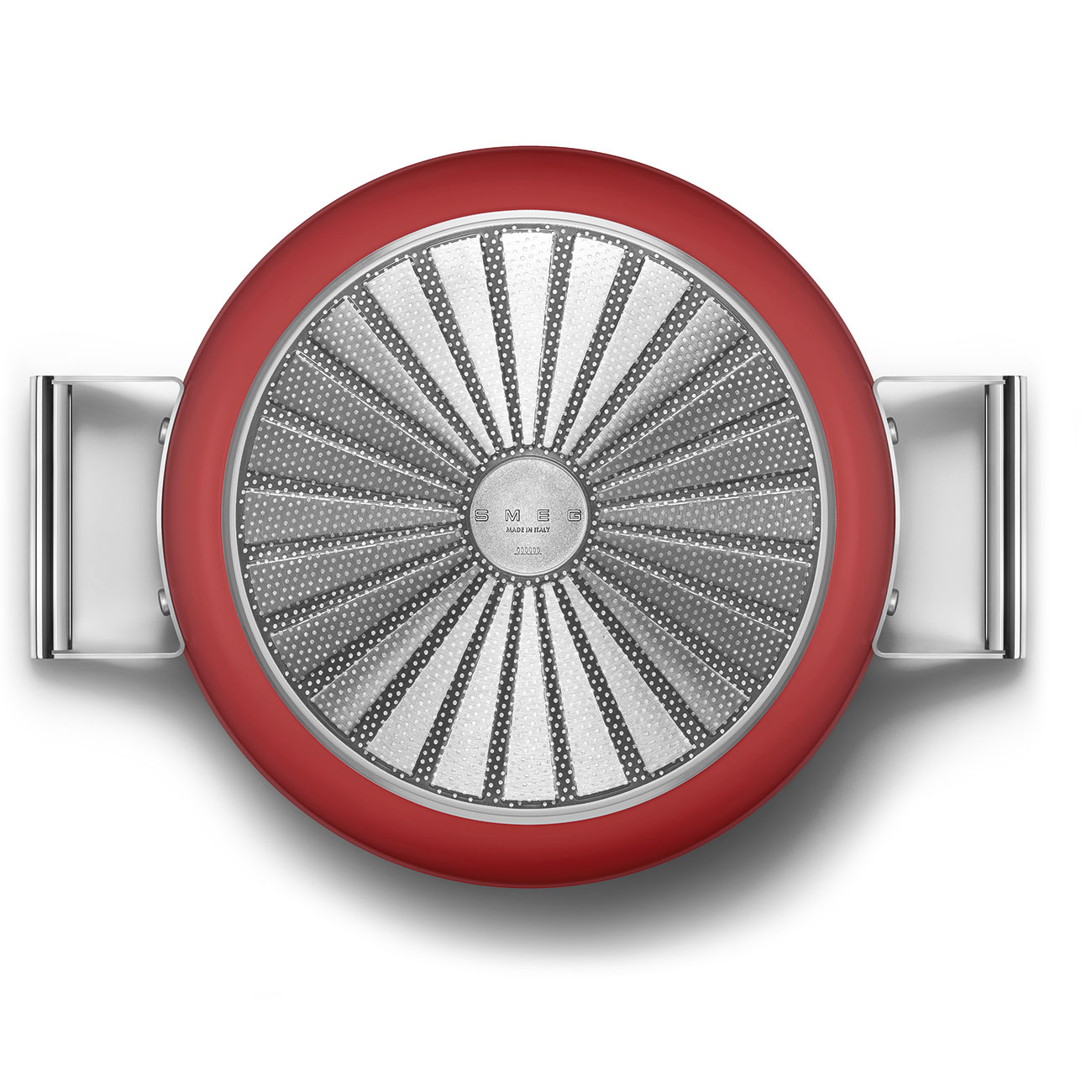 מחבת עמוקה אדומה עם ידית נירוסטה