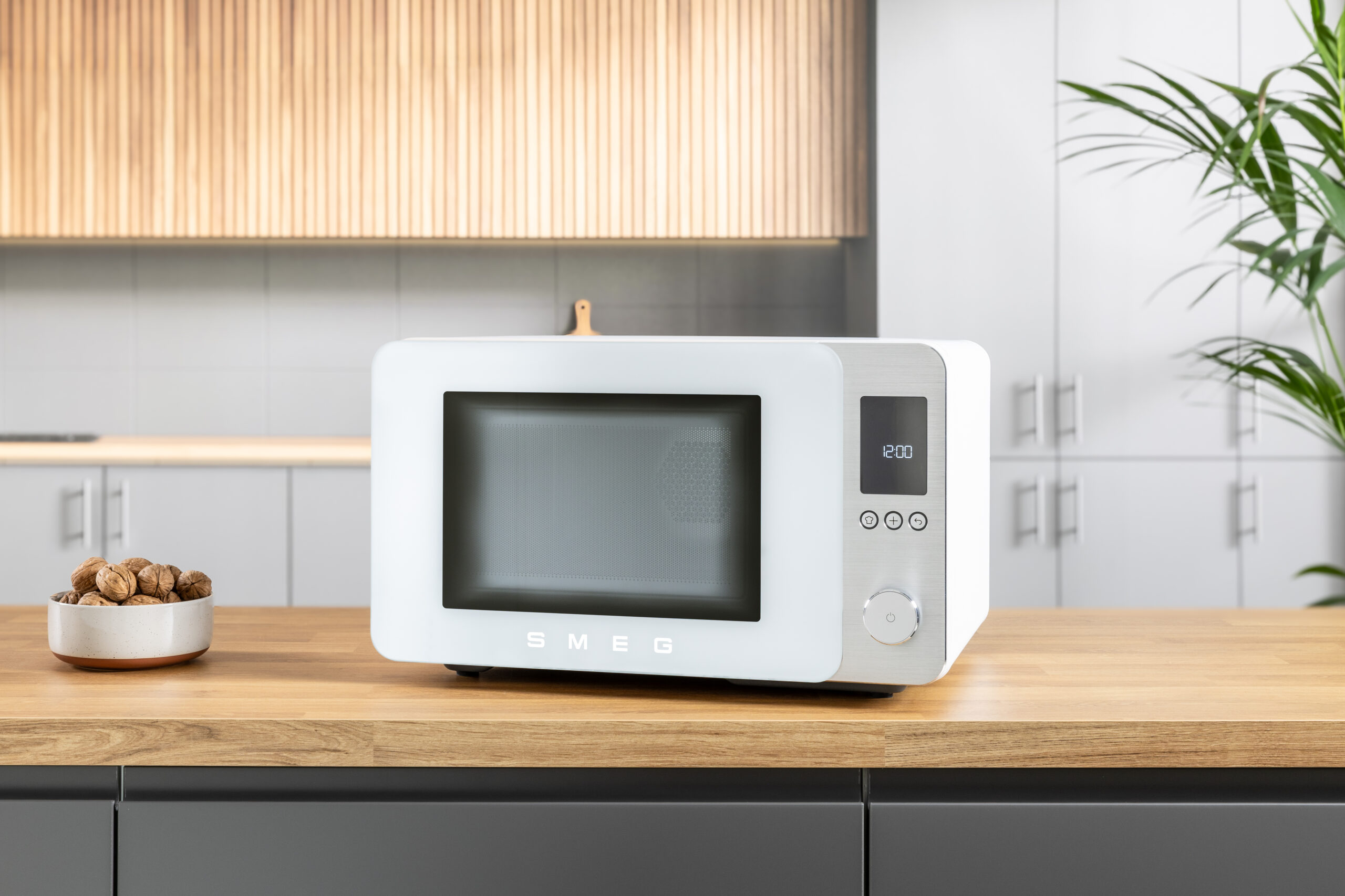 תנור מיקרוגל עם גריל שולחני בסגנון רטרו בצבע לבן