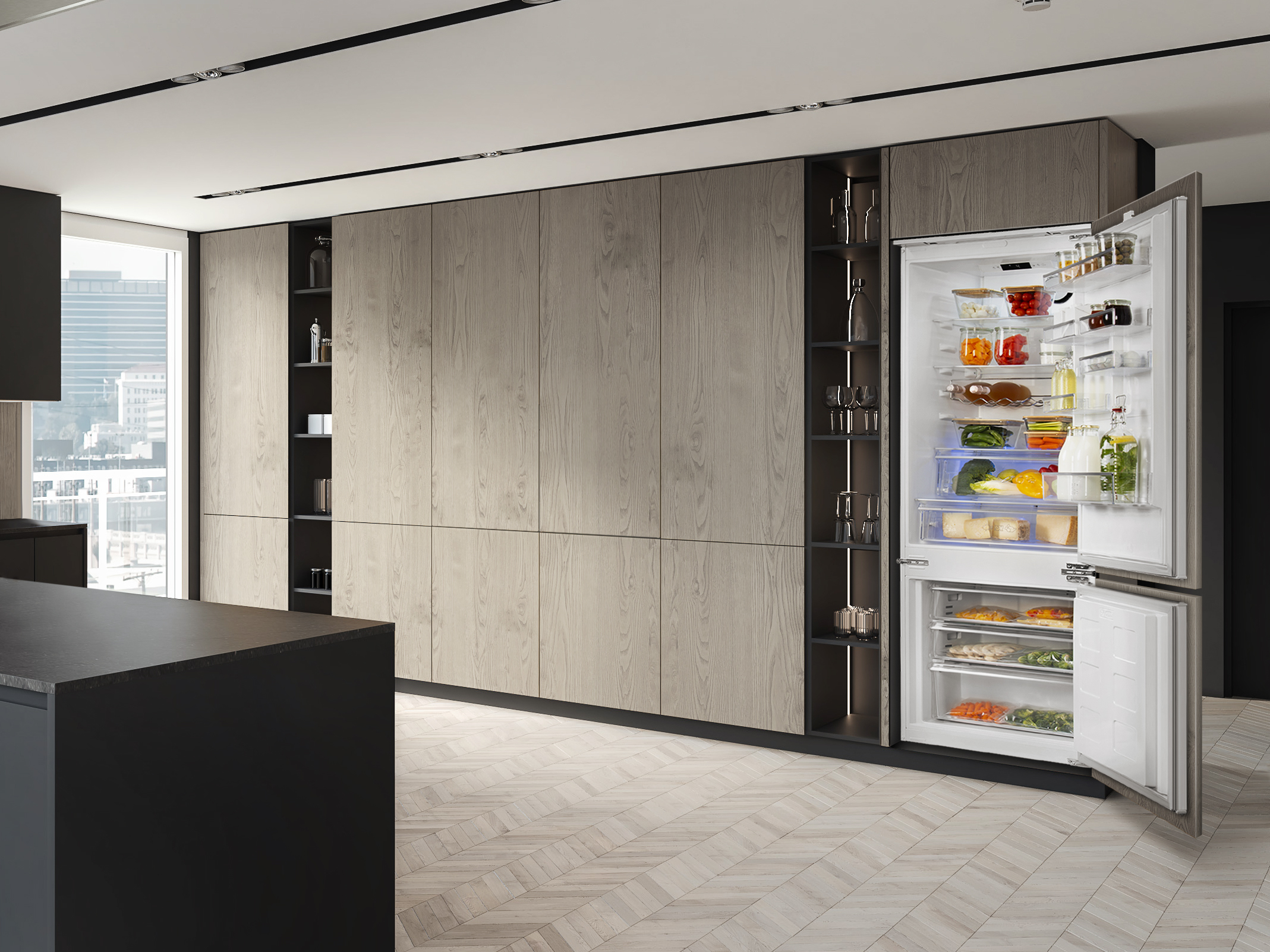 מקרר אינטגרלי עם מקפיא תחתון מתצוגה