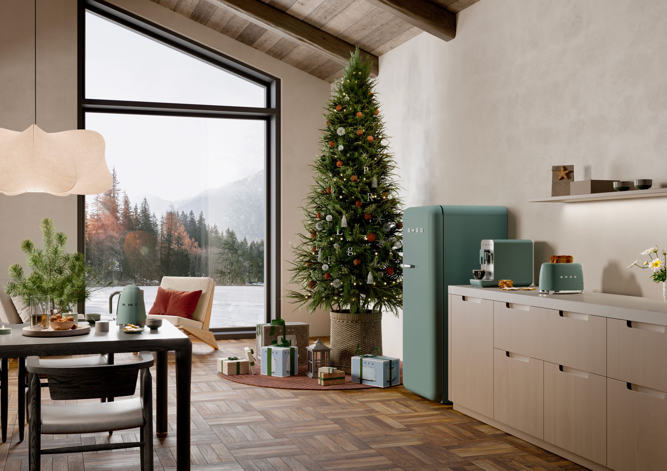 מקרר רטרו ירוק אזמרגד מתצוגה