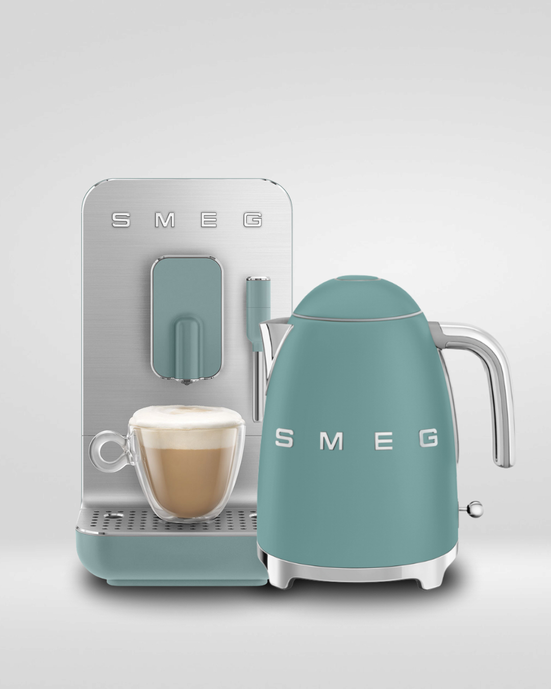 סט מכונת אספרסו אוטומטית וקומקום חשמלי SMEG – בצבע ירוק אמרלד