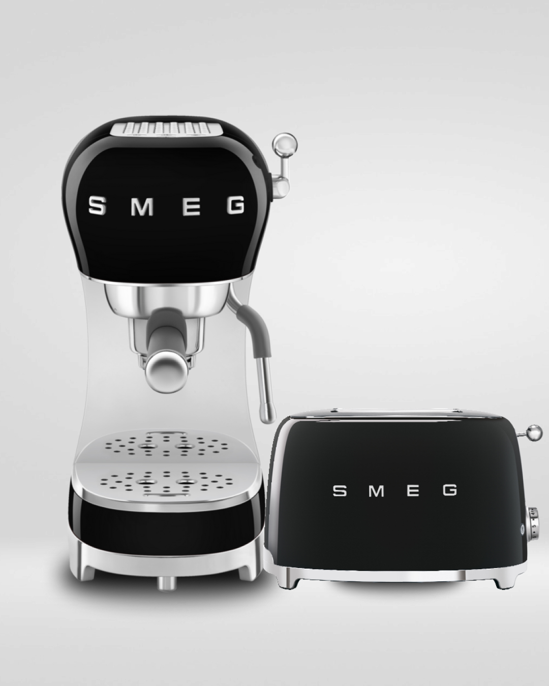 סט מכונת אספרסו ידנית ומצנם קופץ ל-2 פרוסות SMEG - בצבע שחור