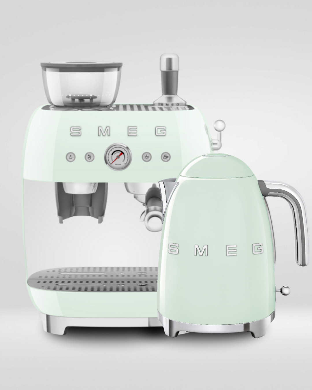 סט מכונת אספרסו מקצועית וקומקום חשמלי SMEG - בצבע ירוק פסטל