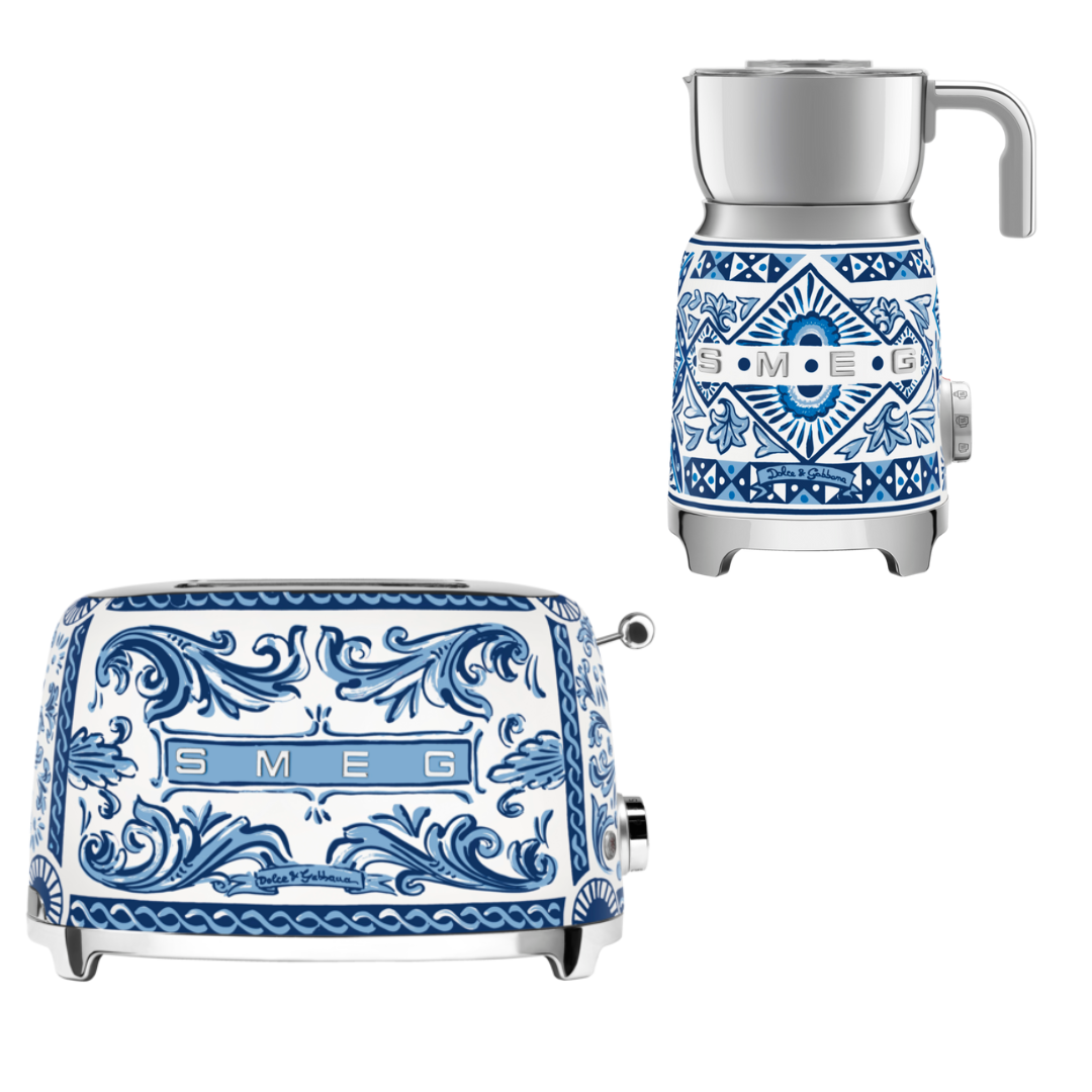 סט מצנם קפץ ל-2 פרוסות ומקציף חלב בעיצוב דולצ'ה וגבאנה כחול לבן