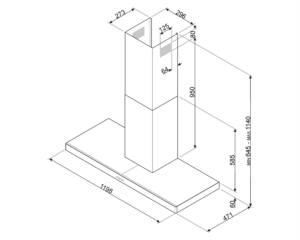 קולט אדים ארובה ברוחב 120 ס”מ, נירוסטה, 3 מהירויות הפעלה, מנוע בעל ביצועים גבוהים