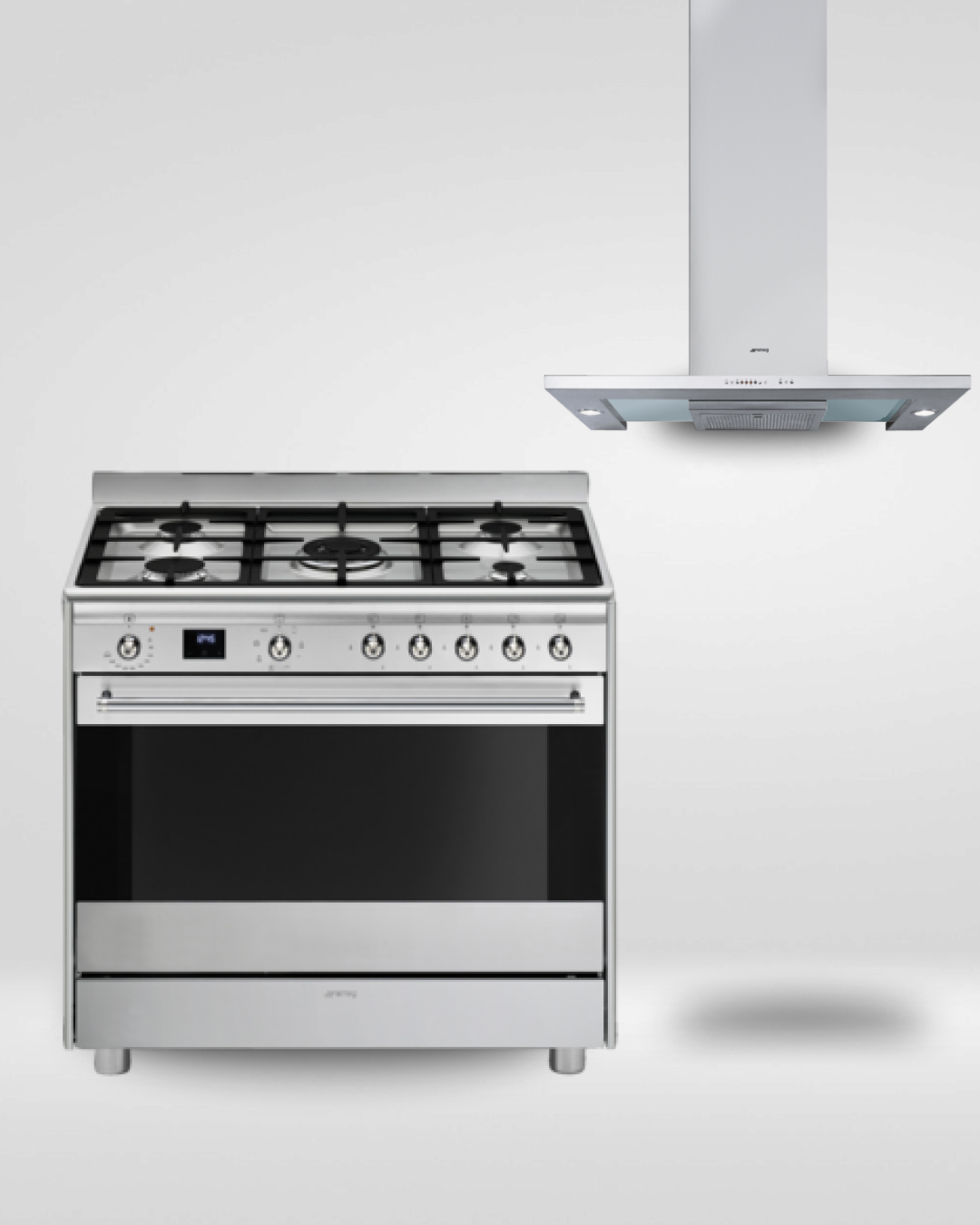 תנור טורבו אקטיבי משולב עם כיריים גז 5 מבערים + קולט אדים SMEG במבצע